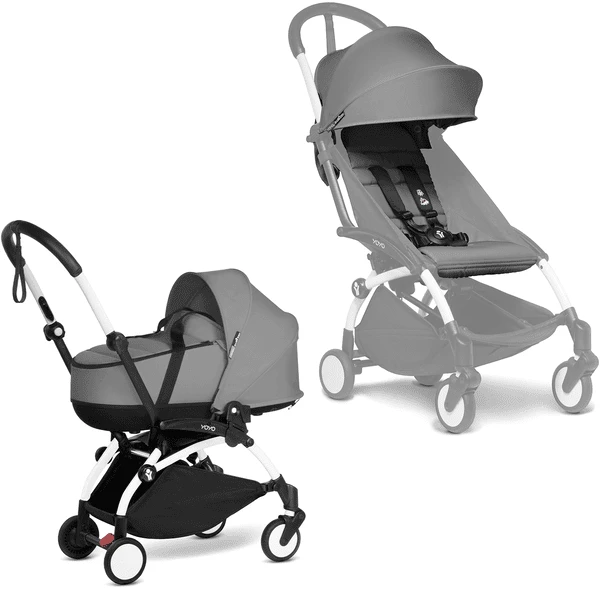 BABYZEN Kinderwagen YOYO2 0+ White mit Liegewanne inkl. Textilset Grey