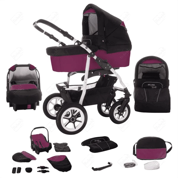 Bebebi Bellami | 3 in 1 Kombi Kinderwagen Set | Hartgummireifen Bellaviola