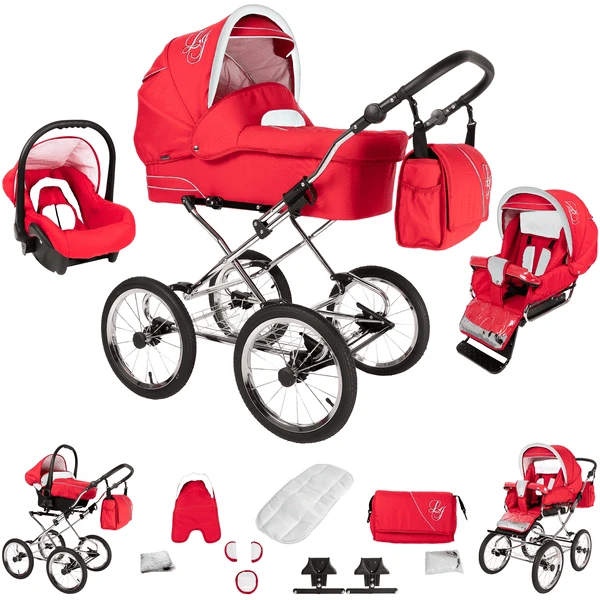 Bebebi Loving | 3 in 1 Kombi Kinderwagen Set | Nostalgie Kinderwagen Red Ardent