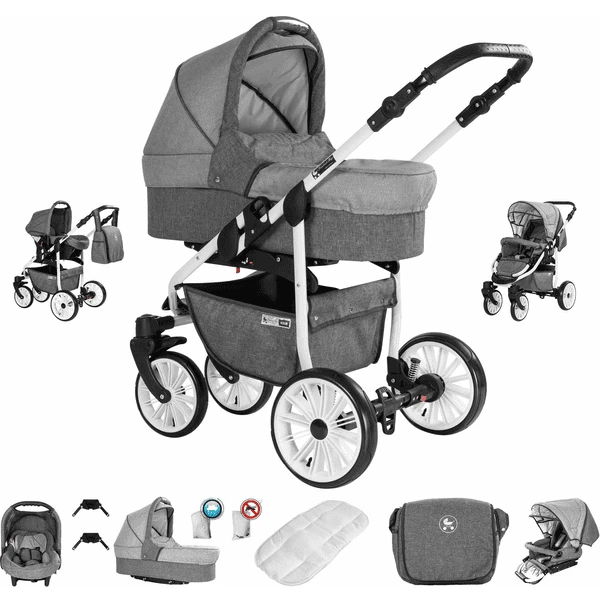 Friedrich Hugo Berlin | 3 in 1 Kombi Kinderwagen Set | GEL Reifen Grey and Light Grey Day