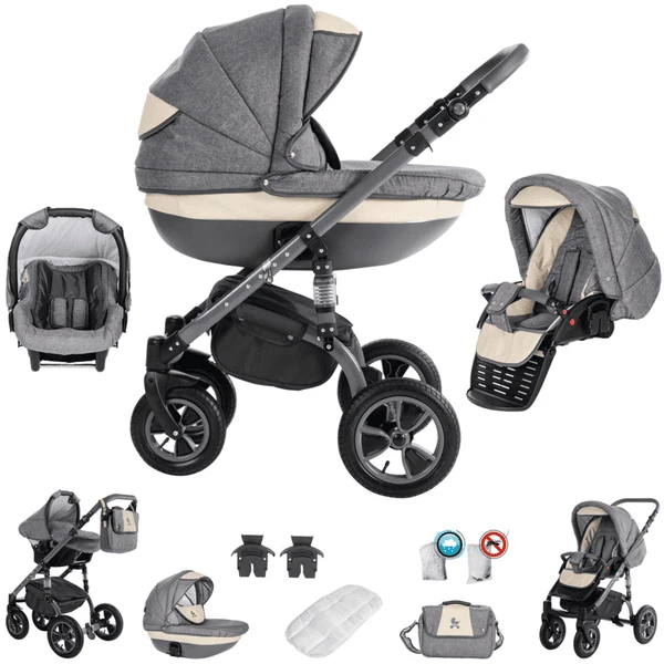 Friedrich Hugo Greyline | 3 in 1 Kombi Kinderwagen Set | Luftreifen Cream