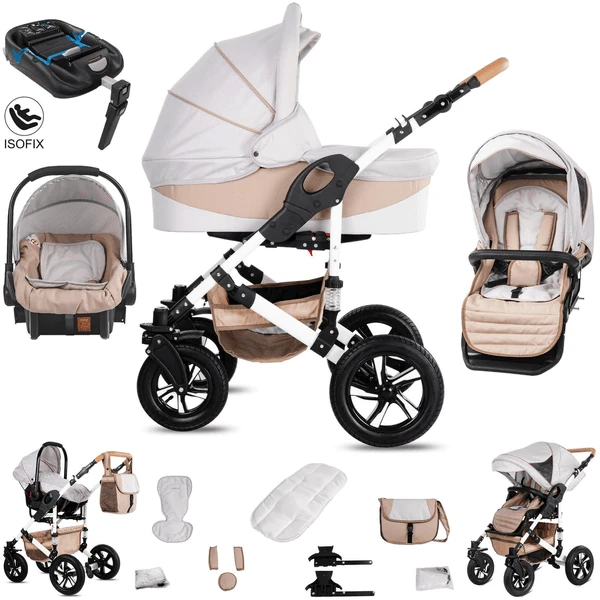 Friedrich Hugo Hamburg | 4 in 1 Kinderwagen Komplettset | ISOFIX Basis | Hartgummireifen Cream & Beige