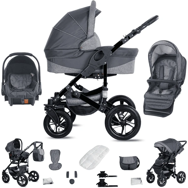 Friedrich Hugo Münster | 3 in 1 Kombi Kinderwagen Set | Luftreifen Grey & Grey Linen